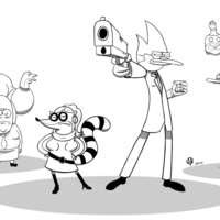 Desenhos de Apenas um Show para colorir, pintar e imprimir. Apenas um Show ou Regular Show é uma série de desenhos animados que conta a história de dois amigos: um gaio-azul chamado Mordecai e um guaxinim chamado Rigby. Eles são jardineiros do parque municipal. Sempre tentam fugir do trabalho para se divertir, mas, em geral, essas tentativas os levam a aventuras surreais e extremas. Dessas aventuras também participam outros personagens como Benson, Pairulito, Musculoso, Fanstamão, Saltitão e Margarete.