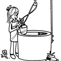 Menina pegando água no poço