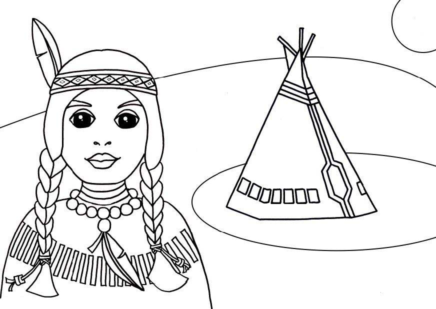 Desenho de Indígena e oca para colorir