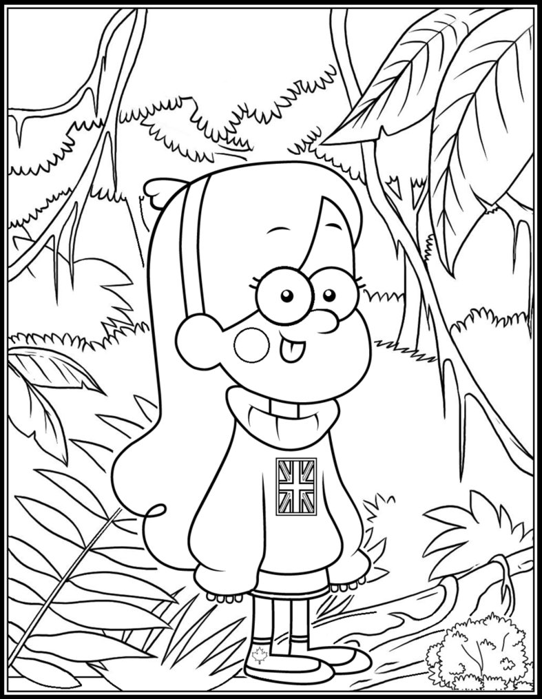 Desenho de Mabel na floresta para colorir