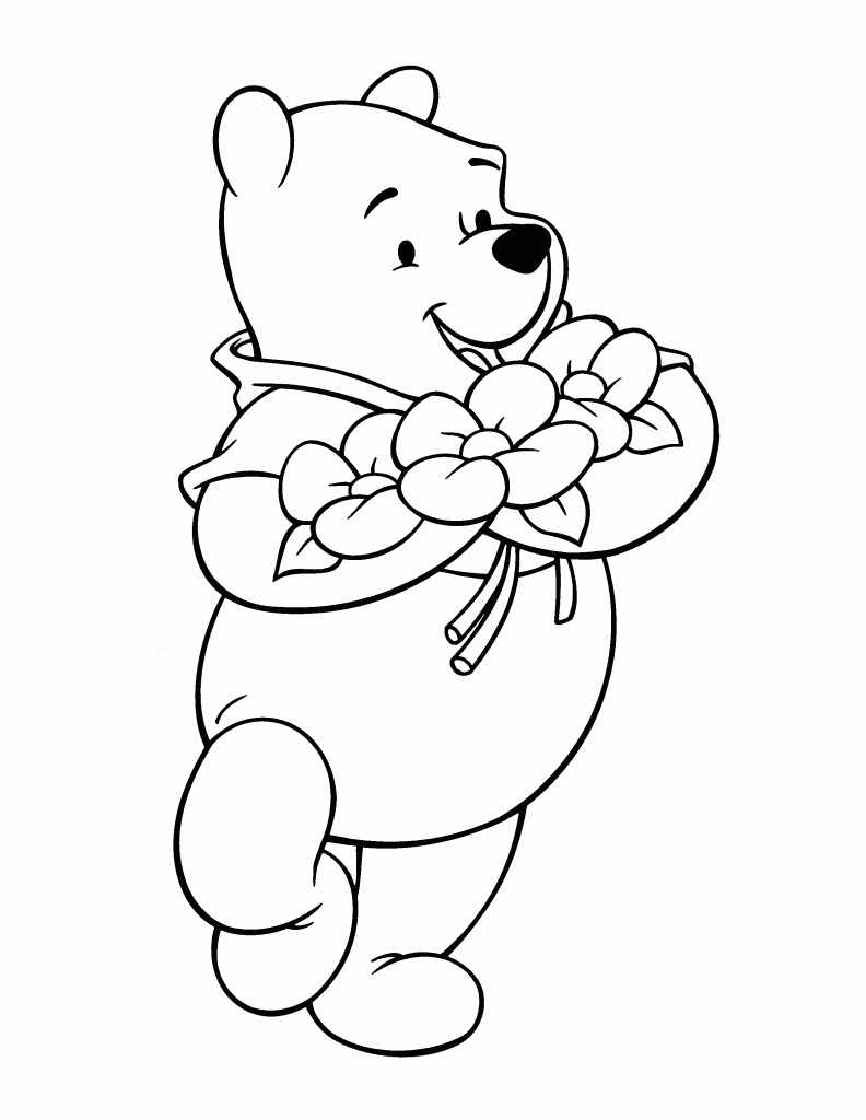 Desenho de Ursinho Pooh e buquê de flores para colorir